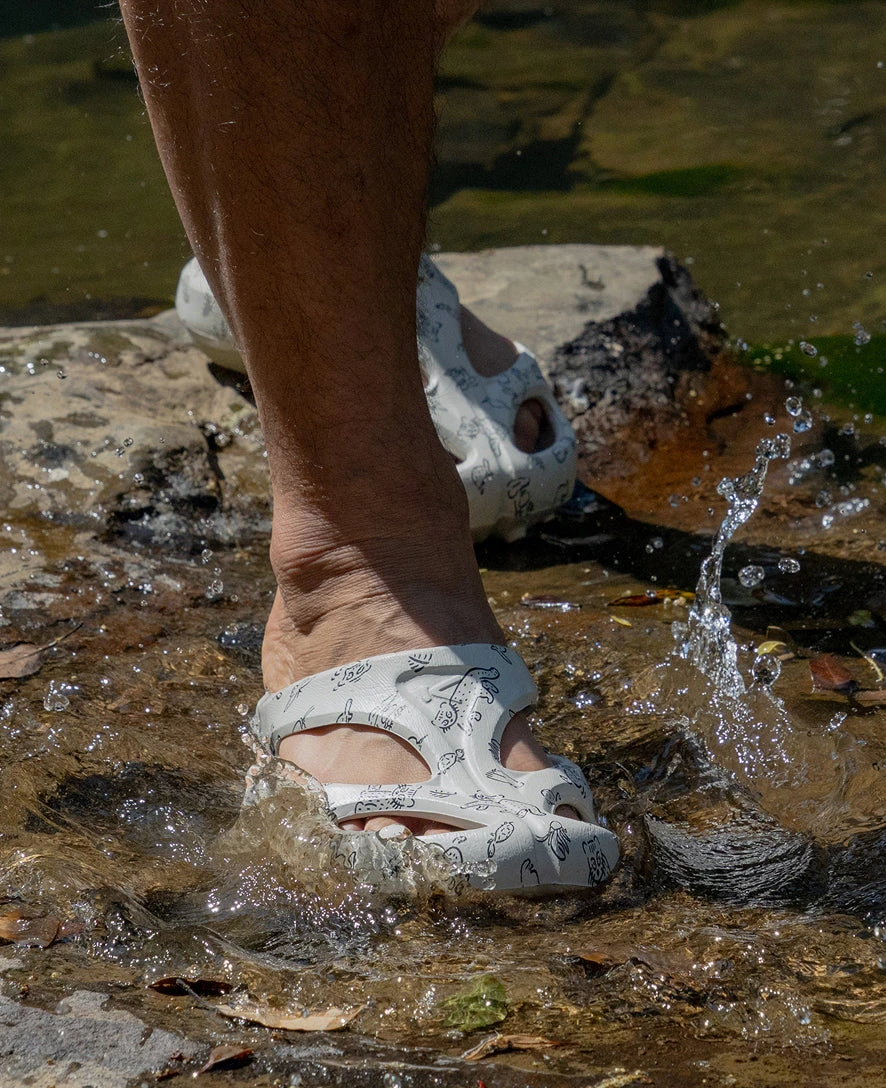 Japan’s remote Iriomote Island provides vital habitat for the critically endangered Iriomote cat, which is artfully illustrated in this limited-edition design of our ultralight, ultra-comfy clog.